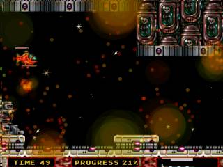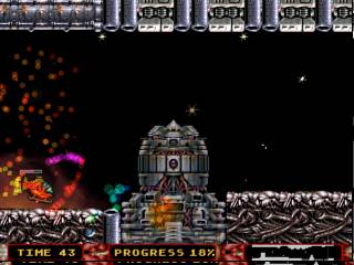 the spaceship from Andro Dunos and some platforms/backgrounds have been "borrowed" from Apidya and the arcade version